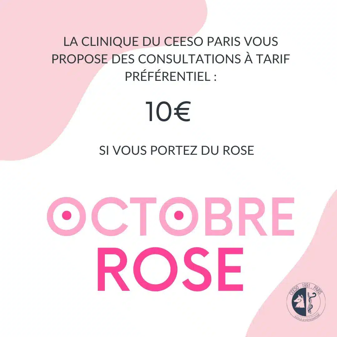 A l’occasion d’Octobre rose, la clinique du CEESO Paris propose des consultations au tarif de 10€ (sans abonnement) pour tous les patients qui se présentent avec un vêtement ou un accessoire de couleur rose.