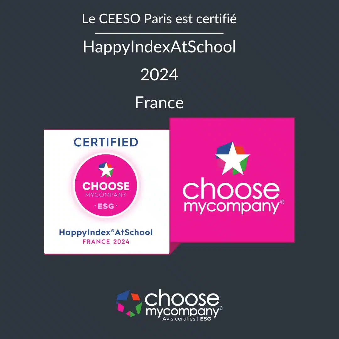 Avec la nouvelle labellisation HappyIndexAtSchool® 2024 du CEESO Paris, la vocation s’apprend vraiment ici!