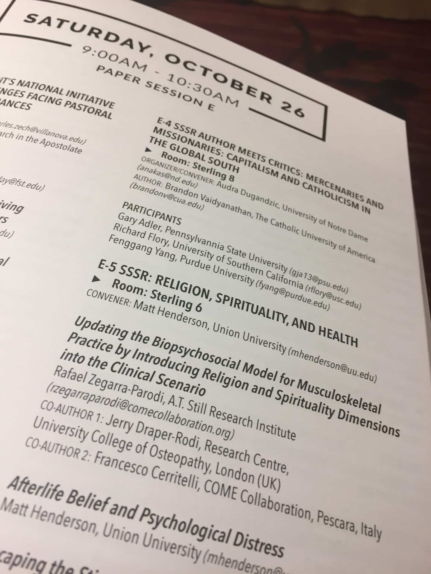 Rafael Zegarra-Parodi, chercheur et enseignant au CEESO Paris était présent le samedi 26 Octobre au congrès annuel de la fondation Society for the Scientific Study of Religion (SSSR) à St Louis dans le Missouri (USA).